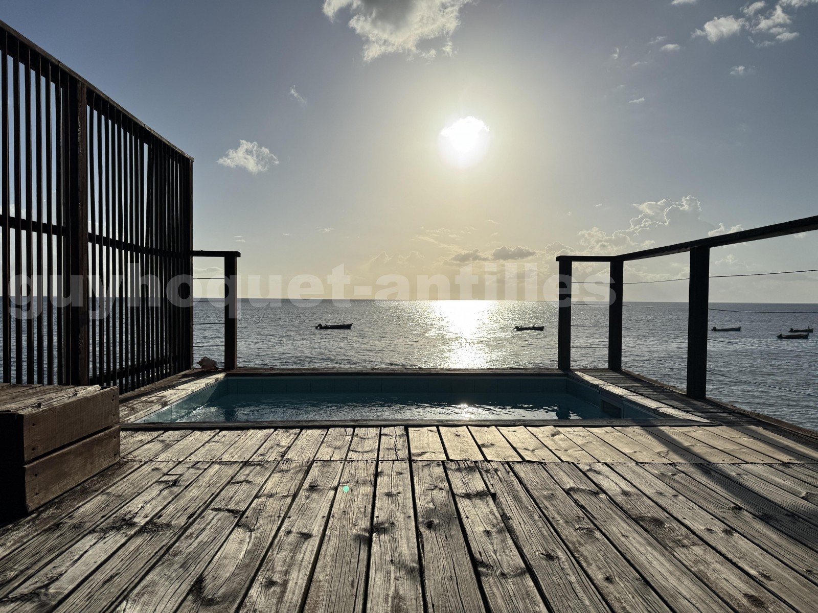 Profitez de deux terrasses : l’une à l’entrée de la maison, l’autre offrant un accès direct à la mer avec une vue dégagée et relaxante. Pour vos moments de convivialité, un rooftop aménagé avec bac à punch vous séduira par sa vue panoramique exceptionnelle sur la mer.