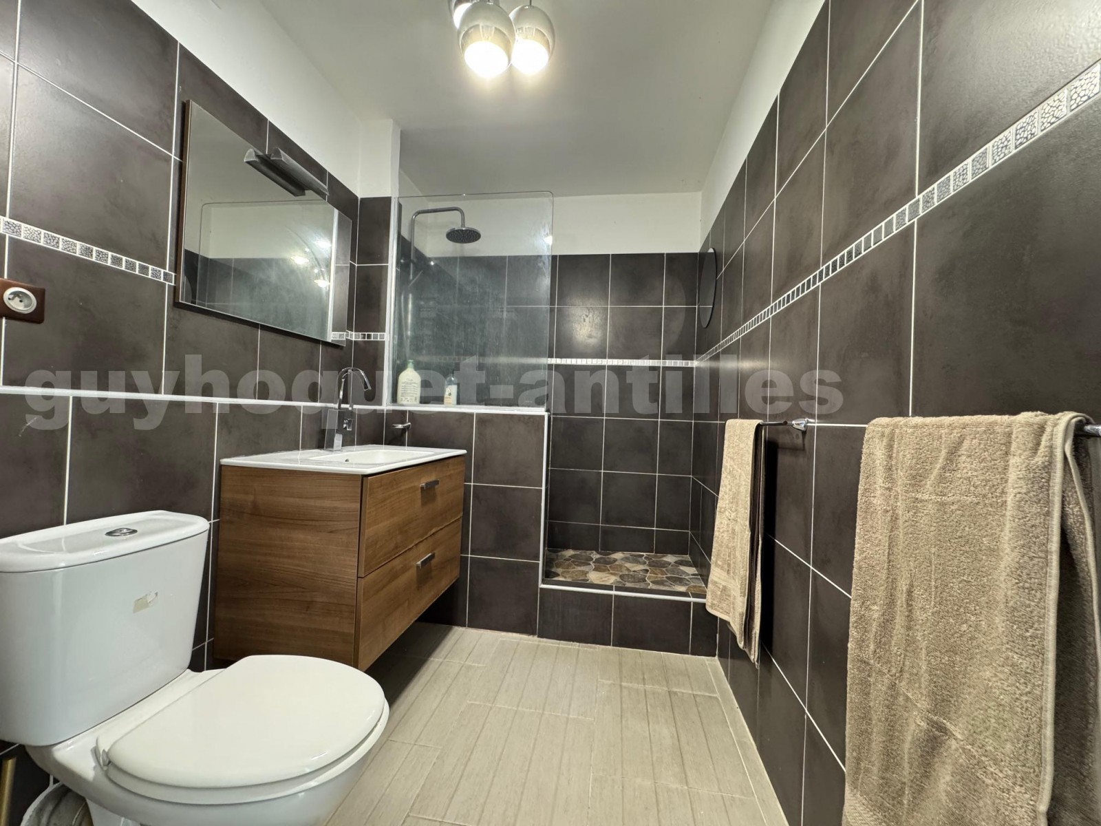 Les deux autres chambres, toutes climatisées, disposent chacune de leur salle d’eau privative, garantissant confort et intimité à chacun.