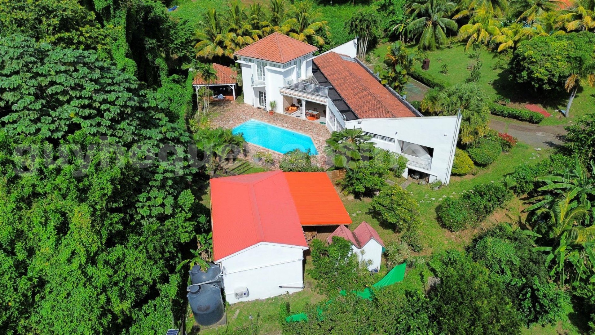 À vendre, une superbe villa d’architecte T9 d’environ 350 m², implantée sur une parcelle arborée de 2172 m², dans un cadre calme et privilégié. Cette propriété d’exception offre de magnifiques volumes avec une vaste pièce de vie baignée de lumière, une cuisine moderne entièrement équipée, six chambres spacieuses et cinq salles d’eau. Les finitions soignées et les prestations haut de gamme allient élégance, confort et modernité. À l’extérieur, vous profiterez d’un superbe jardin paysager, d’une piscine parfaitement intégrée à l’espace de vie, ainsi qu’un carbet pour vos moments de détente. Un bungalow T2 indépendant complète l’ensemble, idéal pour accueillir vos proches ou générer un revenu locatif. La propriété dispose également de huit emplacements de stationnement. Une villa rare sur le marché, qui séduira les amateurs de beaux espaces et d’architecture contemporaine, à découvrir sans tarder.